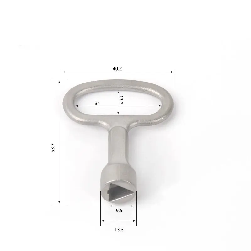 Paslanmaz çelik üçgen anahtarı, üçgen kam kilitleri ile kullanılmak üzere tasarlanmıştır, bu da dosyalama dolapları, ofis mobilyaları, enstrümantasyon ekipmanları ve elektrikli kontrol dolapları gibi çeşitli uygulamalar için uygun hale getirir.